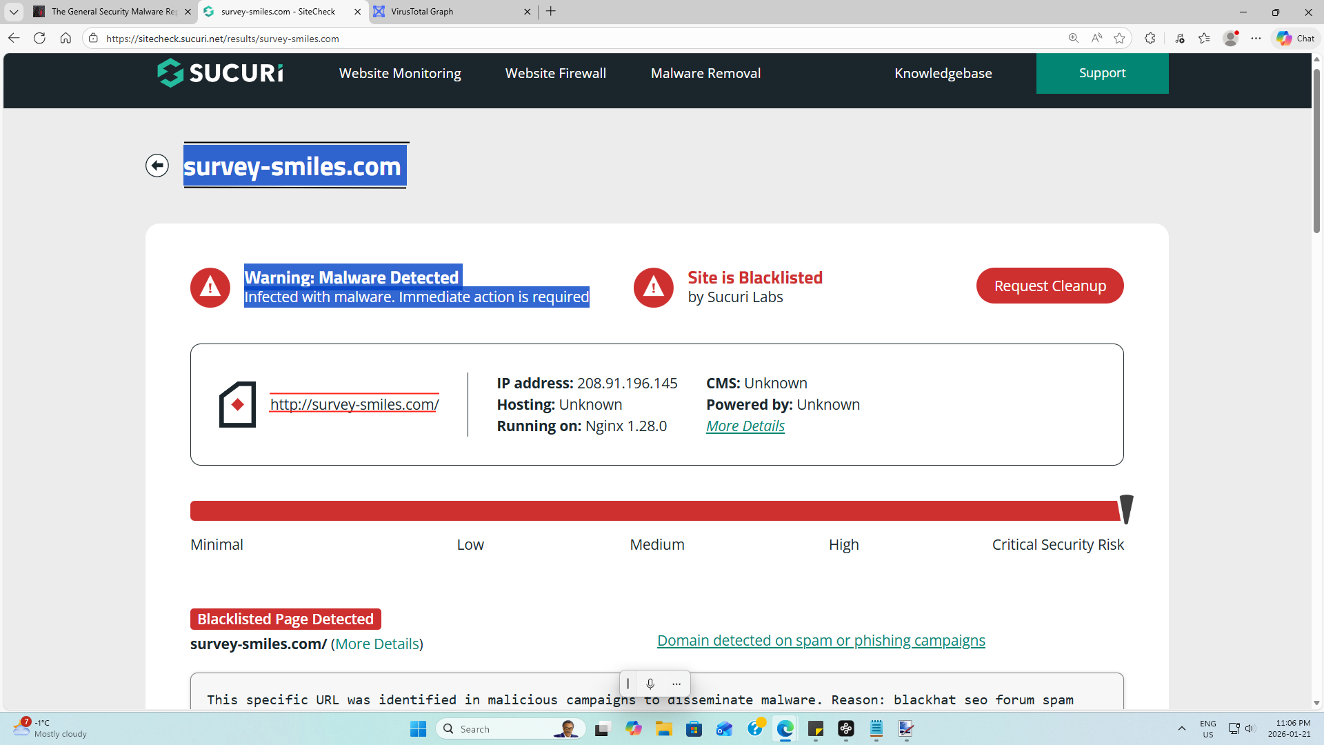 We have uncovered [3,493] mal Hops, Lines of blockable, verifiable, hidden, active, lethal Domains/IPs detected in the Domain, IP Address, and even hiding in the Source code.