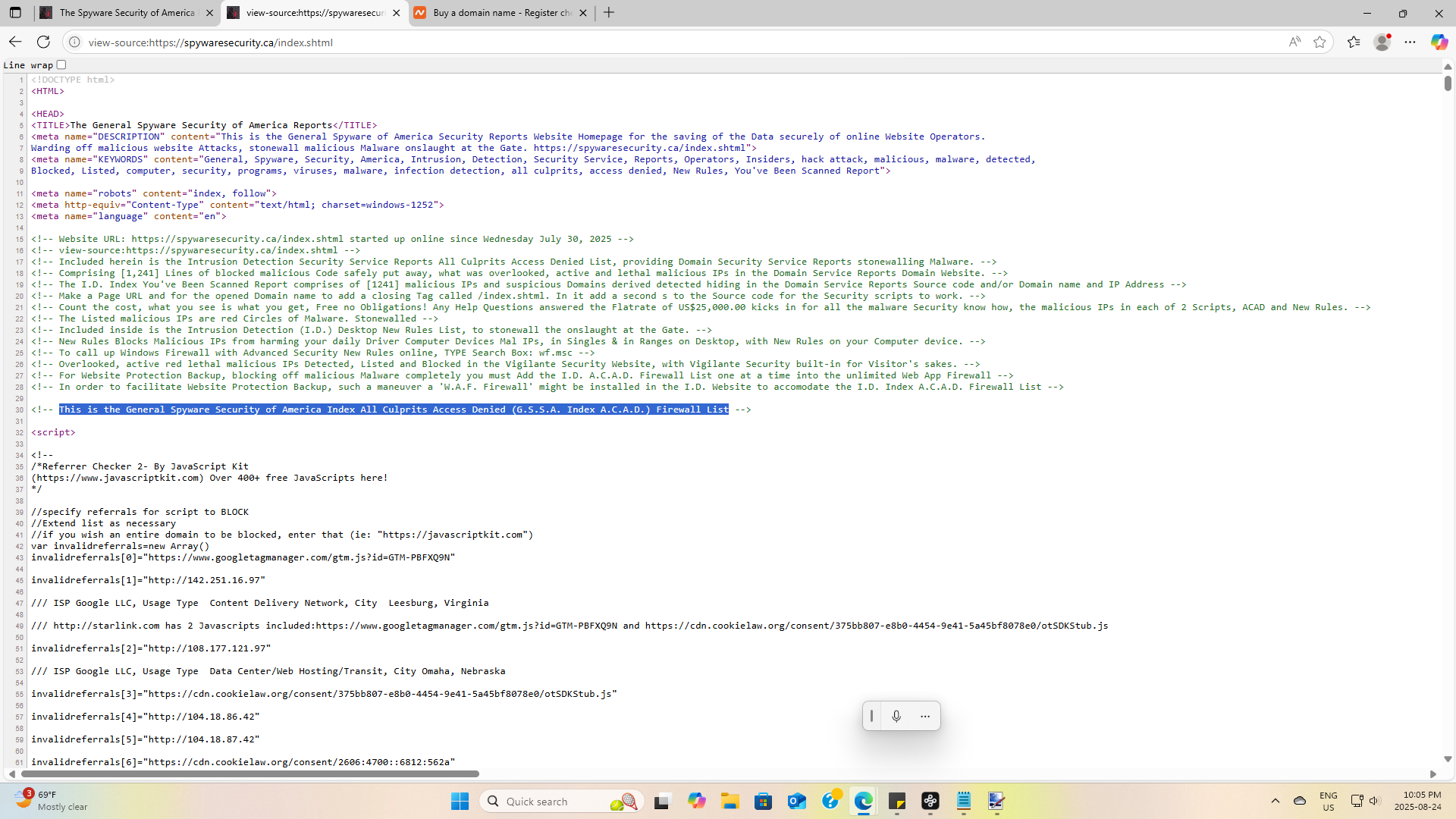 (G.S.M. A.C.A.D.) Firewall List into the Website Source code in the head Section of your Domain https://spywaresecurity.ca/index.shtml Domain Source code.